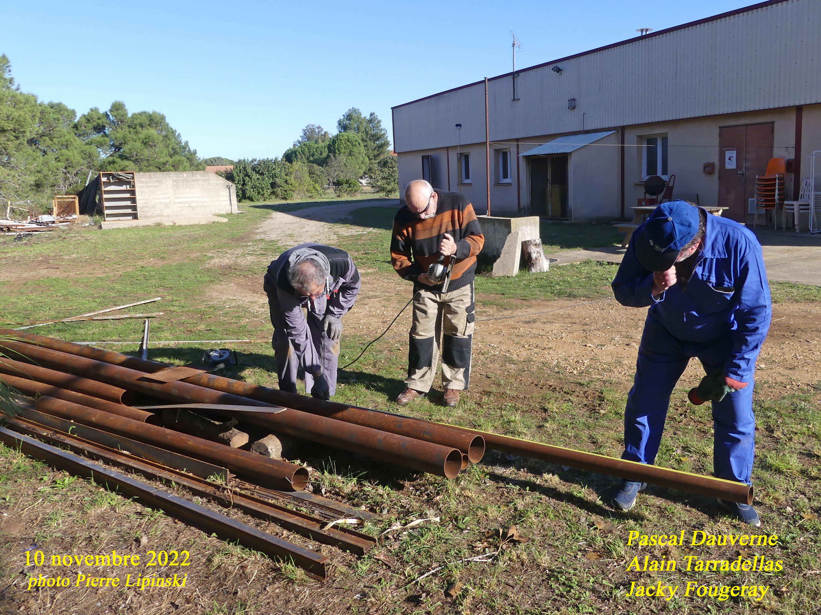 2022 11 10 CHAN-PL Journée travail P1230699 Appentis Tronçonnage tubes A.Tarradellas P.Dauverne J.Fougerey